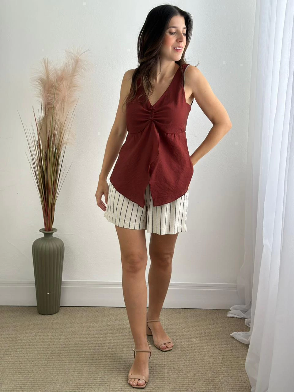 Toque marcante, o franzido valoriza o colo de forma delicada.