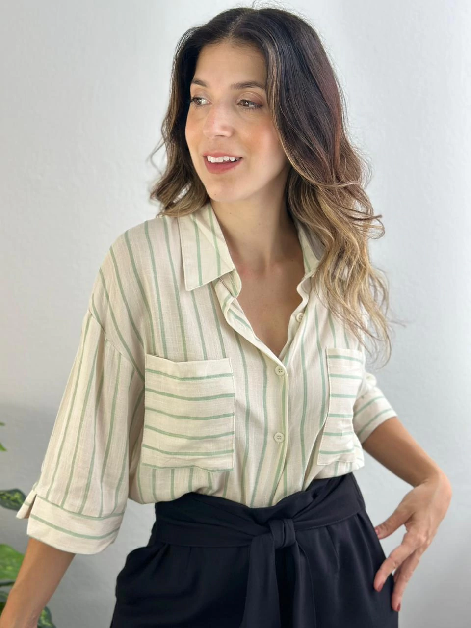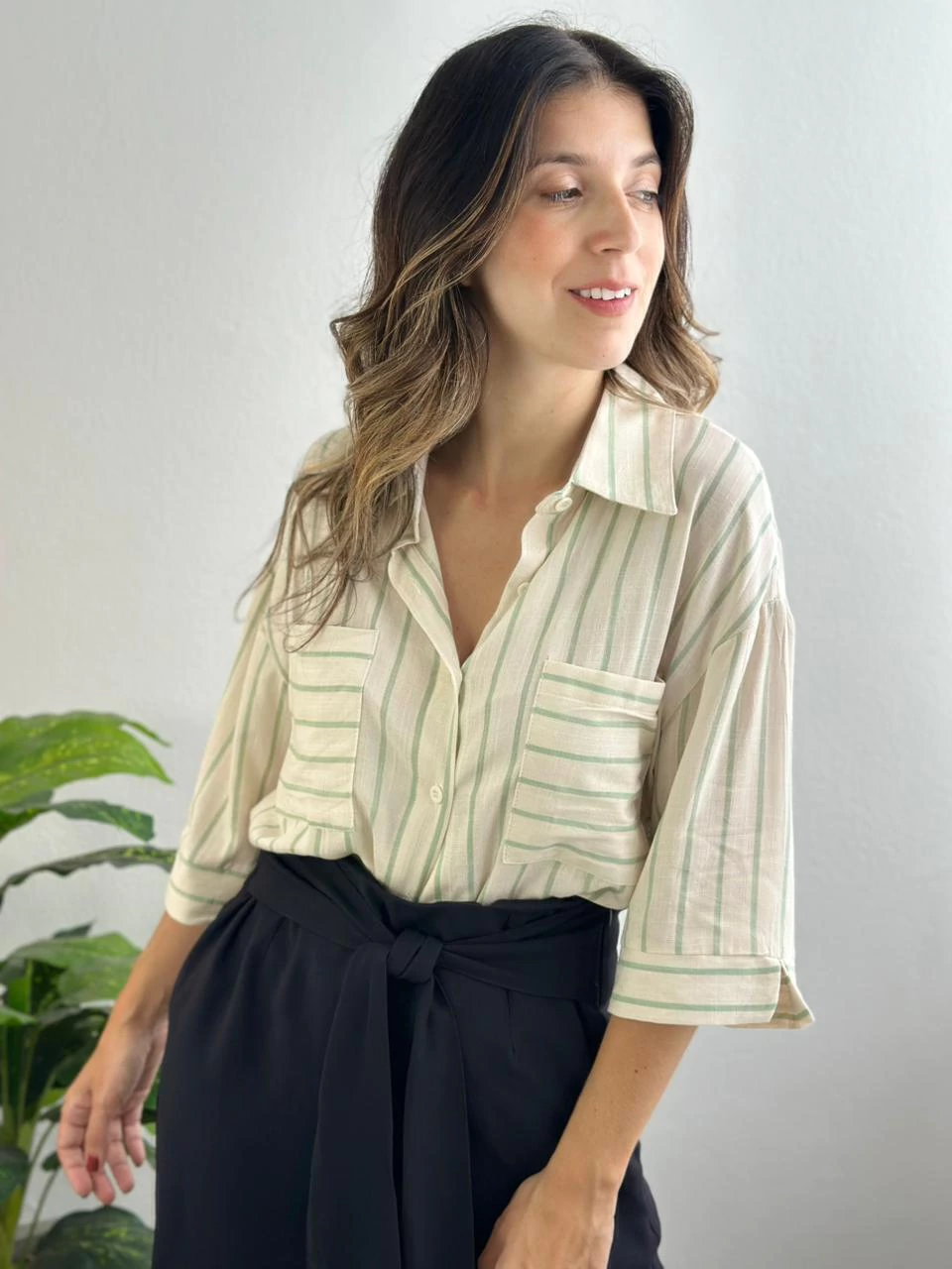 A modelo das fotos veste 36|38, pesa 50kg e tem a altura de 1,55m, ela veste o tamanho M da camisa.