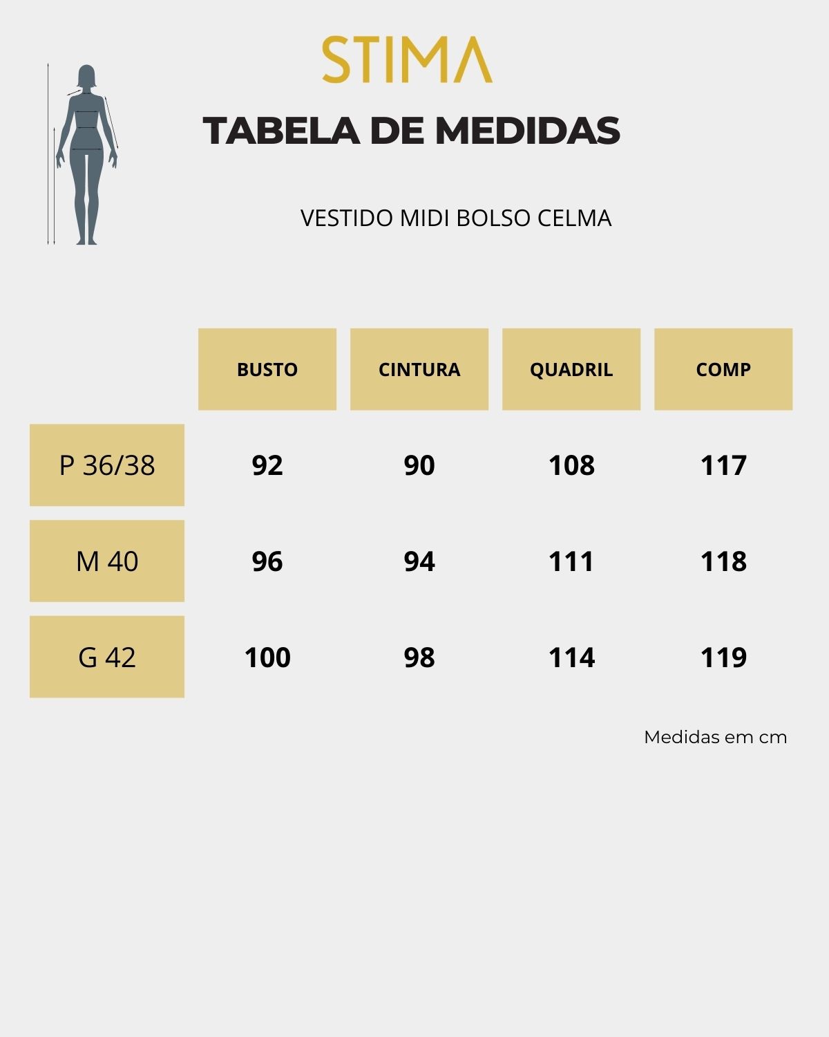 A modelo das fotos veste 36|38, pesa 50kg e tem a altura de 1,55m, ela veste o tamanho P do vestido.